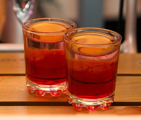 Существует еще один способ приготовления: в стопку сначала наливают водку, потом гренадин. Сироп осядет и отслоится, при этом слегка окрасит водку и подсластит ее. Завершают приготовление несколькими каплями Табаско.